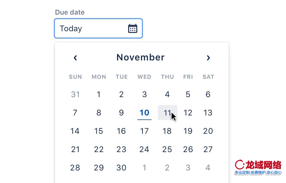 设计清晰的日历覆盖图时,您无需发挥创意。通常,日历叠加层显示在日期输入字段下方,在桌面上显示为一个小面板,在狭窄屏幕上显示为全屏视图。这些日期按行组织,按星期分组,并带有一个下拉菜单,可浏览月份和年份。日历叠加层可以包含各种级别的导航和详细信息,例如星期几应何时开始或是否包含年份。所有这些仅取决于您的受众和网站的应用程序。如果您有公共交通网站,那么餐饮服务或电视只要输入一年就没有意义。另外,如果您有租车网站,则显示月份输入无济于事。